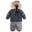Превосходный утепленный костюм для малышей контрастных расцветок. Куртка синего цвета с уютным капюшоном, декорированным натуральным мехом. Полукомбинезон серого цвета на удобных широких лямках. Прекрасный выбор на холодное время года.
